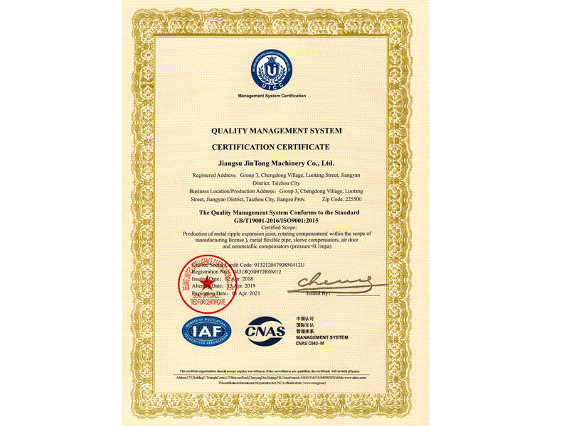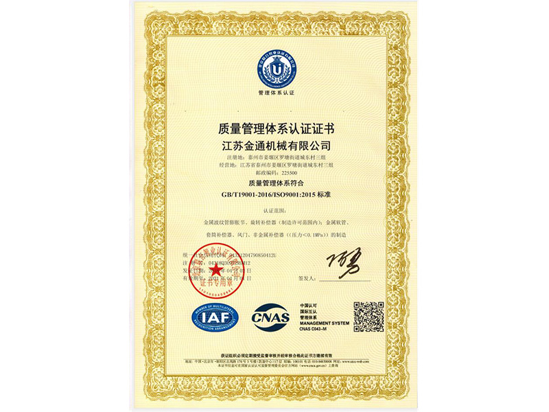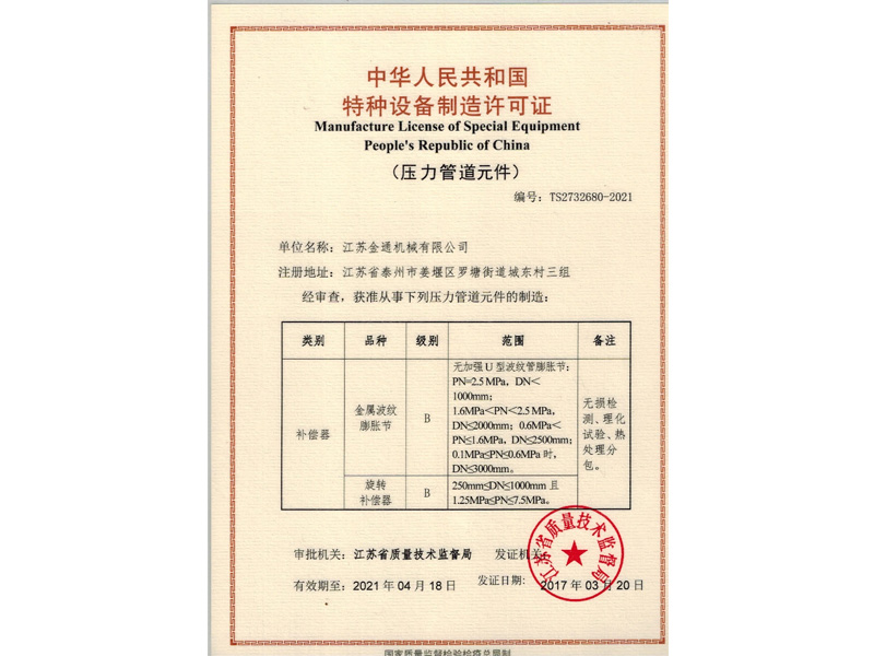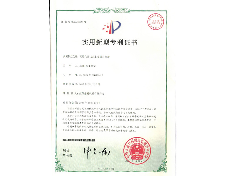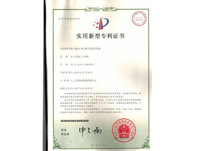 預(yù)硫化焊接式非金屬補(bǔ)償器專利證書(shū)